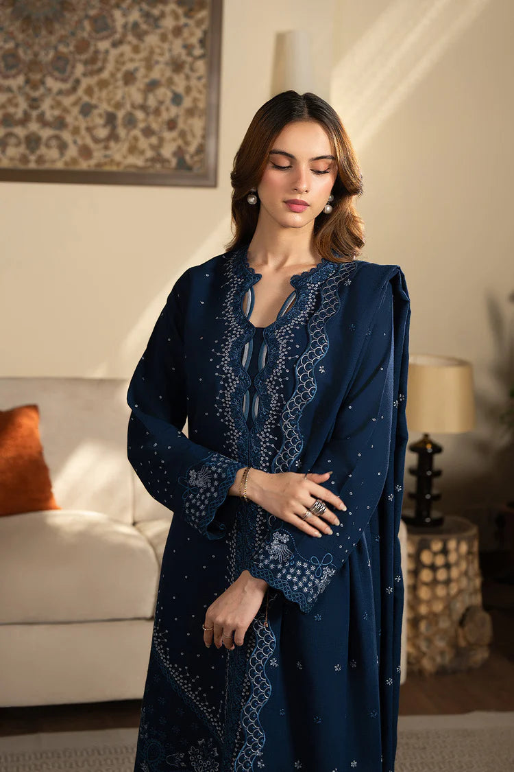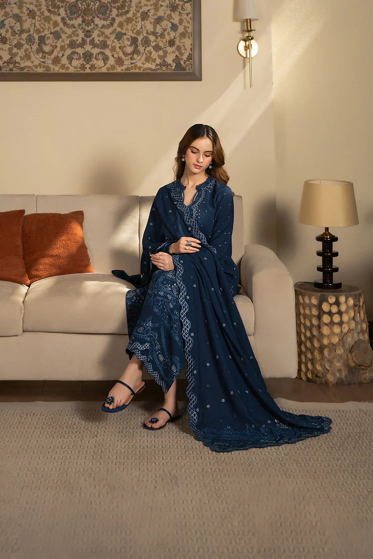 BrandsInn-3PC DHANAK EMBROIDERED SHIRT WITH DHANAK EMBROIDERED SHAWL AND TROUSER-BI-4392