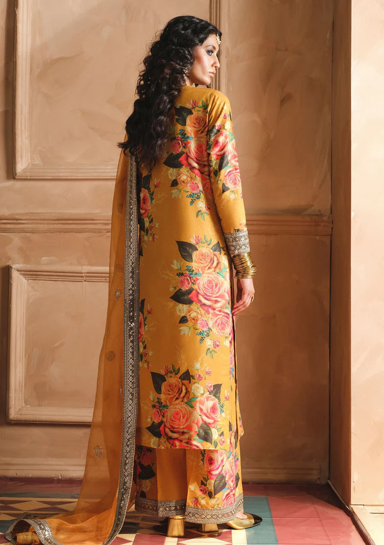 BrandsInn-3PC SHAMOZE SILK PRINTED EMBROIDERED SHIRT WITH SOFT SILK PRINTED EMB DUPATTA & EMB TROUSE- BI-1726